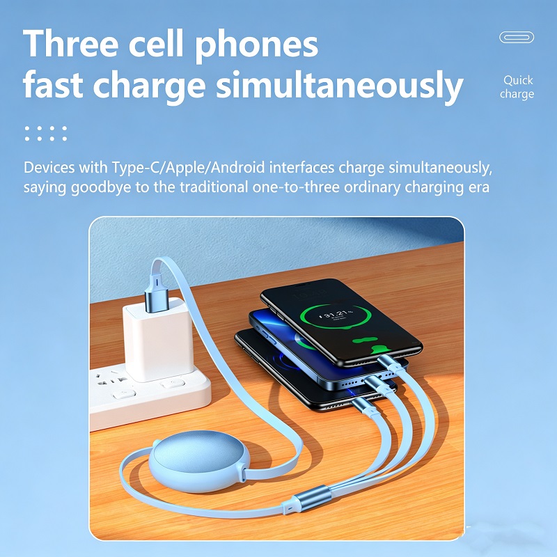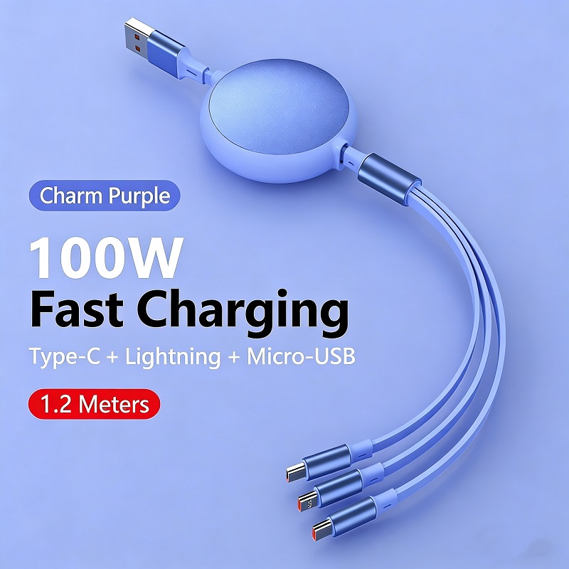 - 【Travel Essentials and Camping Essentials】The 3-in-1 Retractable Charging Cable retractable usb c cable perfectly resolves the clutter caused by excess cables on your desk and in your car, keeping your life consistently neat and organized. When you're getting ready to travel, there's no need to carry a bunch of different cables for various devices anymore. With just one USB-A charging head, you can charge three devices simultaneously, greatly enhancing efficiency. It's a must-have companion for your travels.