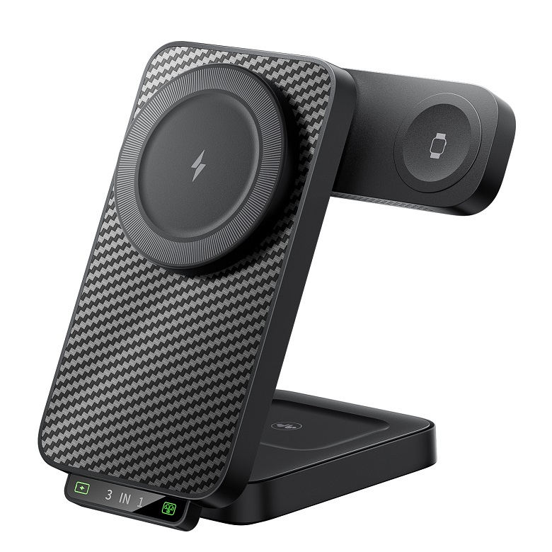 3 in 1 iPhone 17 Charging Station, MagSafe-Compatible Wireless Charger Stand, Qi2 Certified 15W Foldable Charger for iPhone 17/16/15/14/13/12, AirPods, Apple Watch Ultra