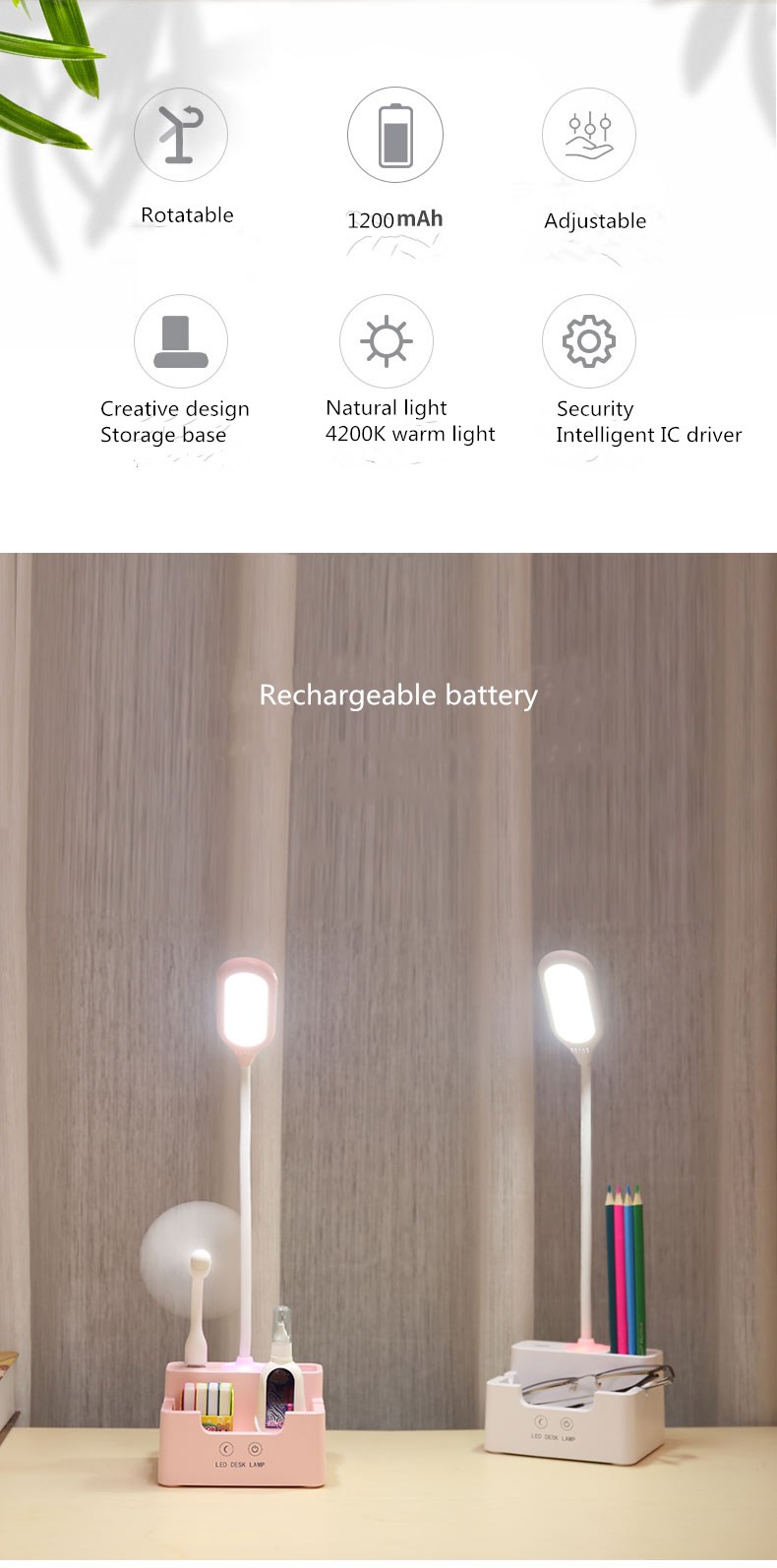 4 in 1 pen storage rechargeable wireless USB smart Eye health Children LED light desktop lamp with phone holder