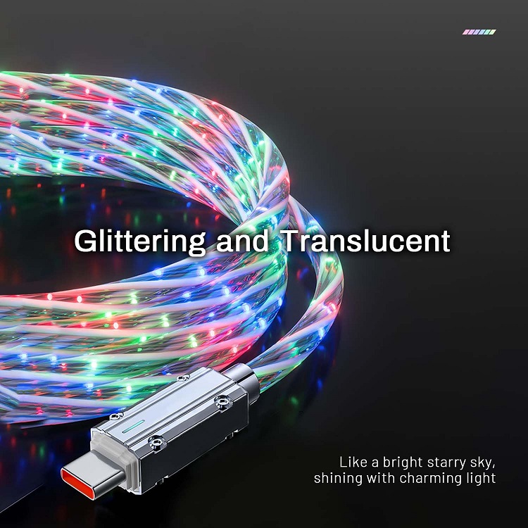 - [Unique Design] When the LED Light up USB charging cable is plugged into the charger and the mobile phone, the charging cable shows a flowing colorful light effect, and the LED light is soft and not dazzling. It decorates your space cool and you can find your devices quickly in dark condition.