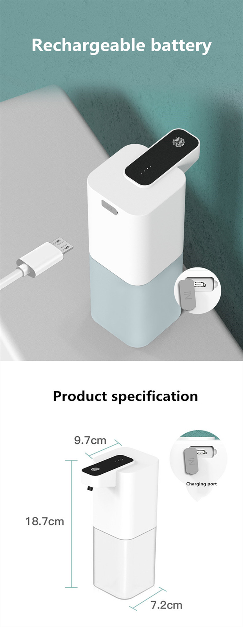 | Product name | rechargeable foam touchless automatic liquid soap dispenser |