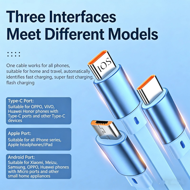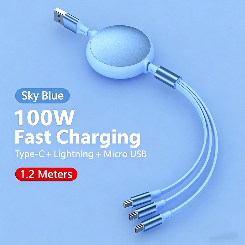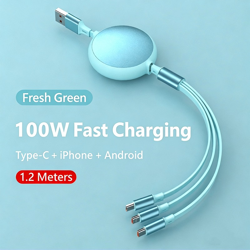 - 【Travel Essentials and Camping Essentials】The 3-in-1 Retractable Charging Cable retractable usb c cable perfectly resolves the clutter caused by excess cables on your desk and in your car, keeping your life consistently neat and organized. When you're getting ready to travel, there's no need to carry a bunch of different cables for various devices anymore. With just one USB-A charging head, you can charge three devices simultaneously, greatly enhancing efficiency. It's a must-have companion for your travels.