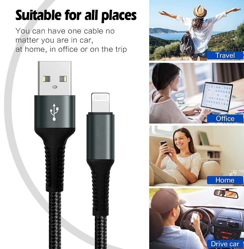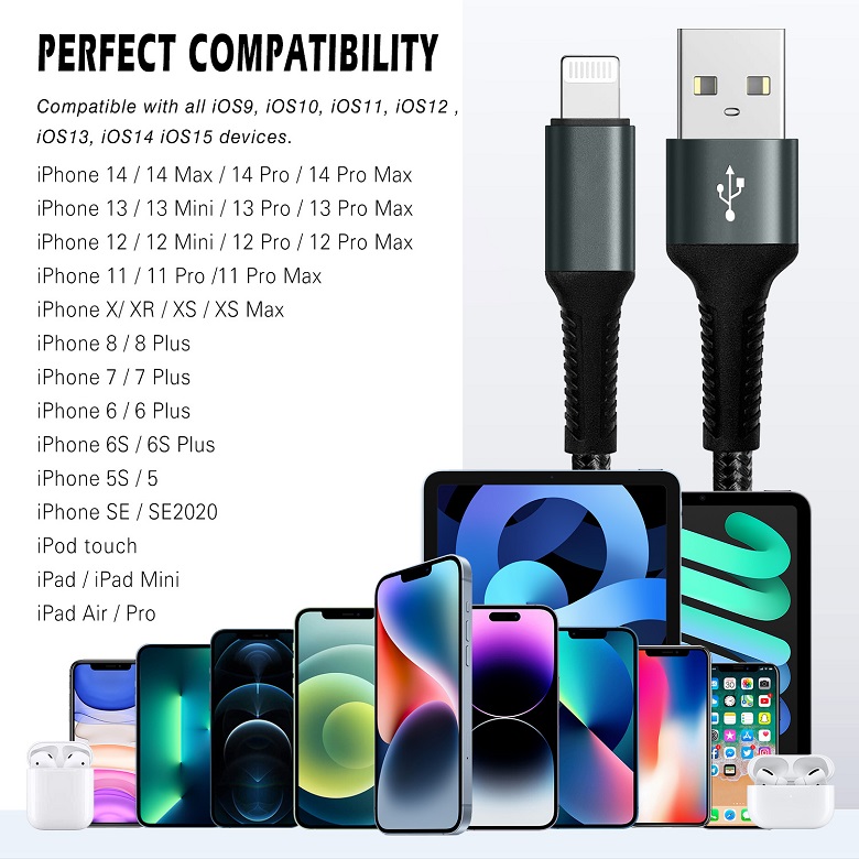 Durable iPhone Charger Cord 3FT/6FT Lightning Cable Nylon Braided iPhone Cord Fast Charging Cable Compatible with iPhone 14/13/12 Pro Max/12Pro/11